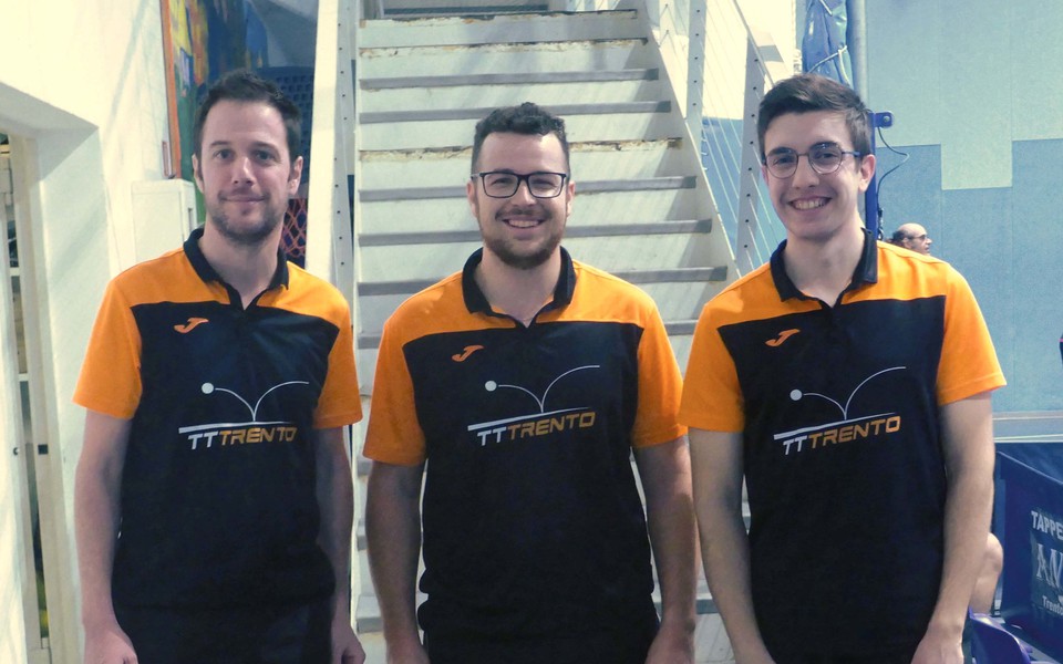 Molto bene il TT Trento di D1 che ha vinto a Pergine, raggiungendo quota 6 punti. Grande prestazione di Mojtaba che ha messo a referto una tripla; Marco e Michele hanno completato egregiamente l’opera.